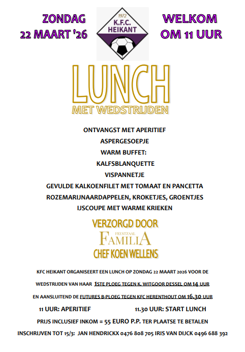 LUNCH MET WEDSTRIJDEN 22 MAART